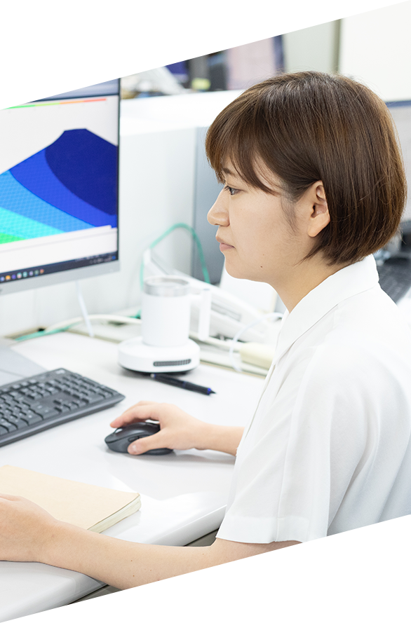 入社後は総合技術第1部に所属し、北海道・青森・福島・愛媛にあるダムの耐震性能照査や改修設計、健全度評価を担当。ダムの安全性が確保されるよう、細かなところまで注意を払って仕事に臨んでいます。
