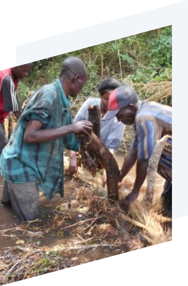 マラウイで小規模かんがいを初めて導入するにあたって、どのような堰にすれば、水をせき止める機能を持ちながら、農家が自前でできるものになるのかとても悩みました。参考になる文献を探していたところ、東京の国立国会図書館で目にしたのが、木や石でできた「信玄堤」です。川の流れを変えて氾濫を防いだという、武田信玄が考案した制水技術にヒントを得て、より簡単に製作できるようにアレンジしたものを考案しました。そしてこれらの堰を現地の方につくってもらう際に大切なことは、一緒にやるということ。現地の方からすれば、海外から専門家チームがやってくると、「彼らがやってくれるのだろう」という意識が芽生えてしまいます。しかし、このプロジェクトは、やってもらうのではなく、自分たちの手でやることが重要。私たちが陸から、「あれをやれ、これをやれ」と指示をしていては、「自分たちでやろう」という自主自助意識は引き出せません。そのため率先して川に入り、共につくり上げていくという姿勢を見せることを心がけています。